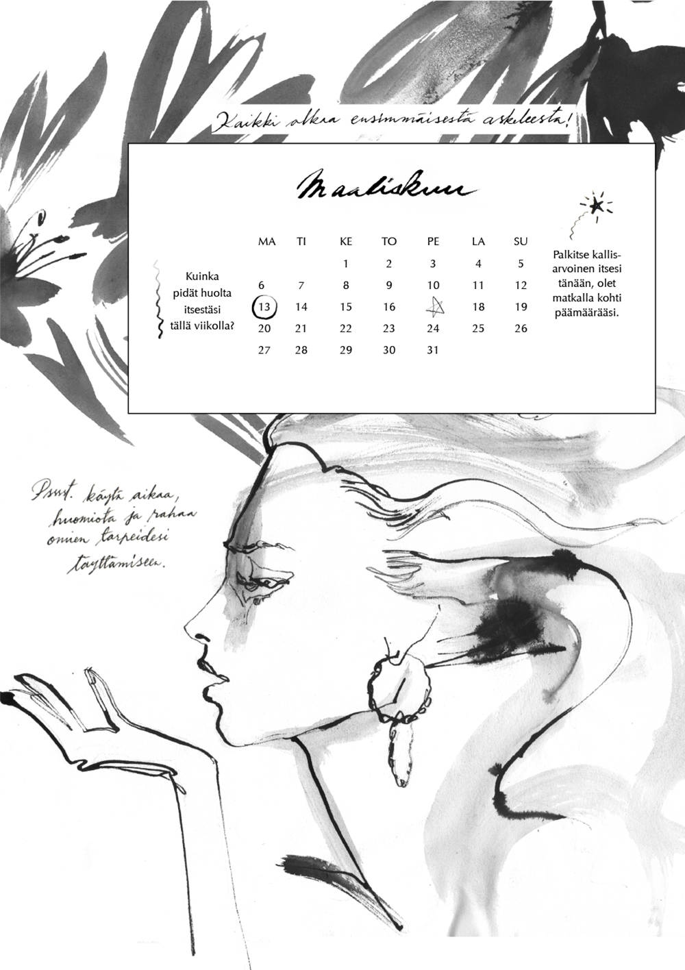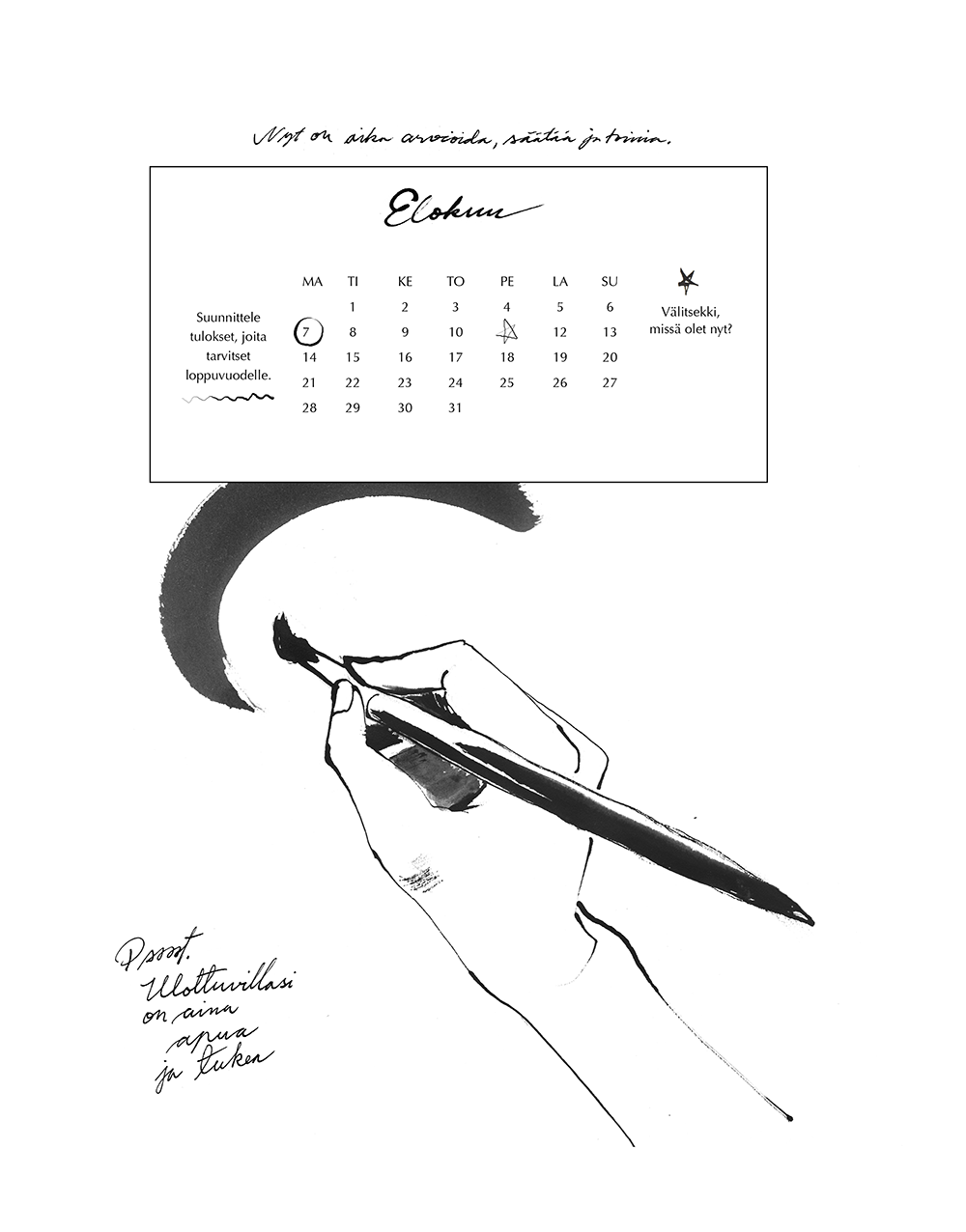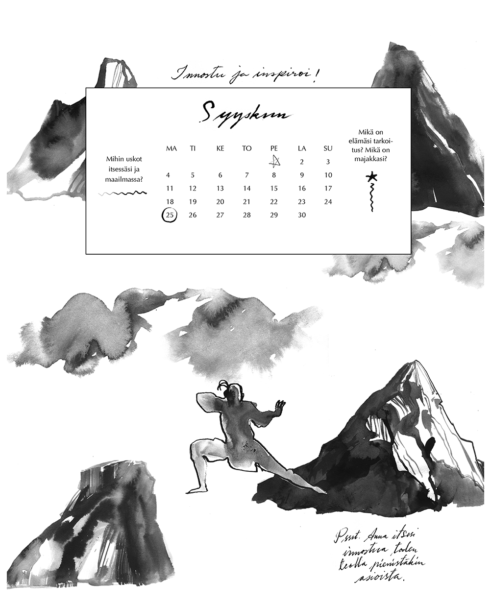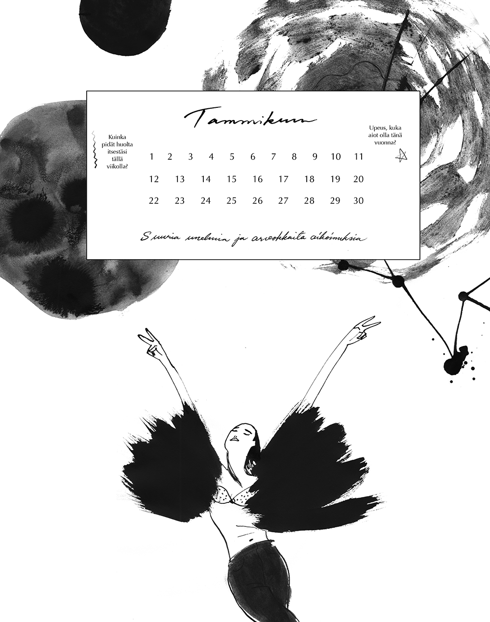 A wall calendar for a personal coaching business. MEDIUM: Ink CLIENT: Ahaa Helsinki